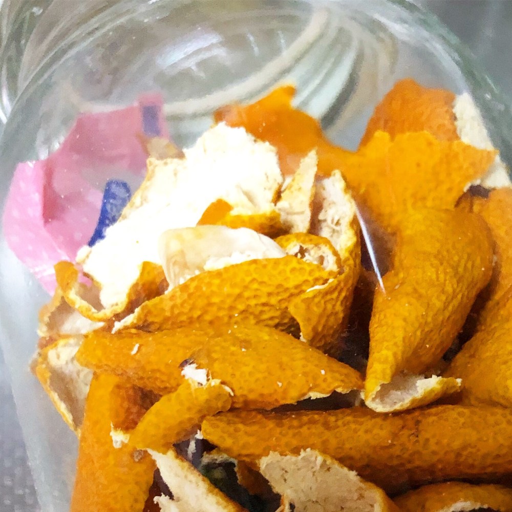 基本、スパイス類は購入していますが、陳皮は買うと高価な上になかなか売っていないので、知り合いの家の庭で取れた蜜柑を貰って食べた後、皮を洗って自分で干しておいた物を使っています。無農薬蜜柑ですし😄
