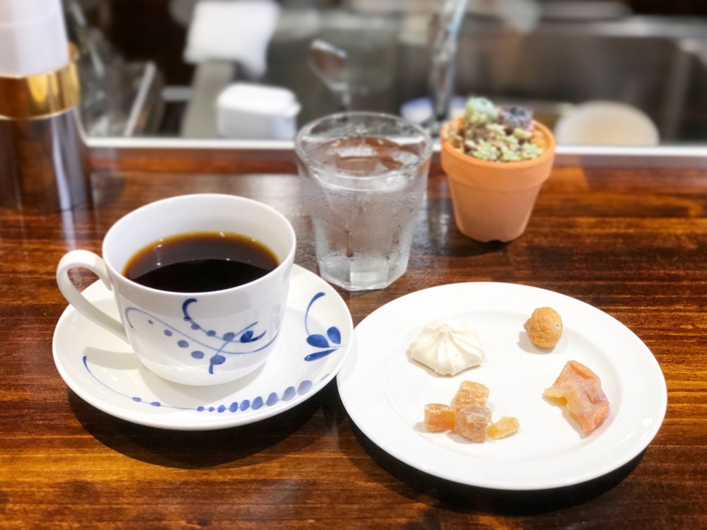 この豆はバッハの御大、田口護さんが自ら買い付けて来た豆だそうです。お菓子セットが150円だったので、お任せで。安納芋のグラッセ、市田柿のドライフルーツ、いちじくのドライフルーツ、メレンゲなど。