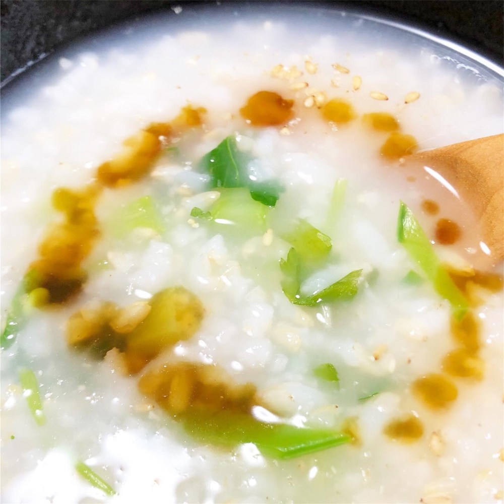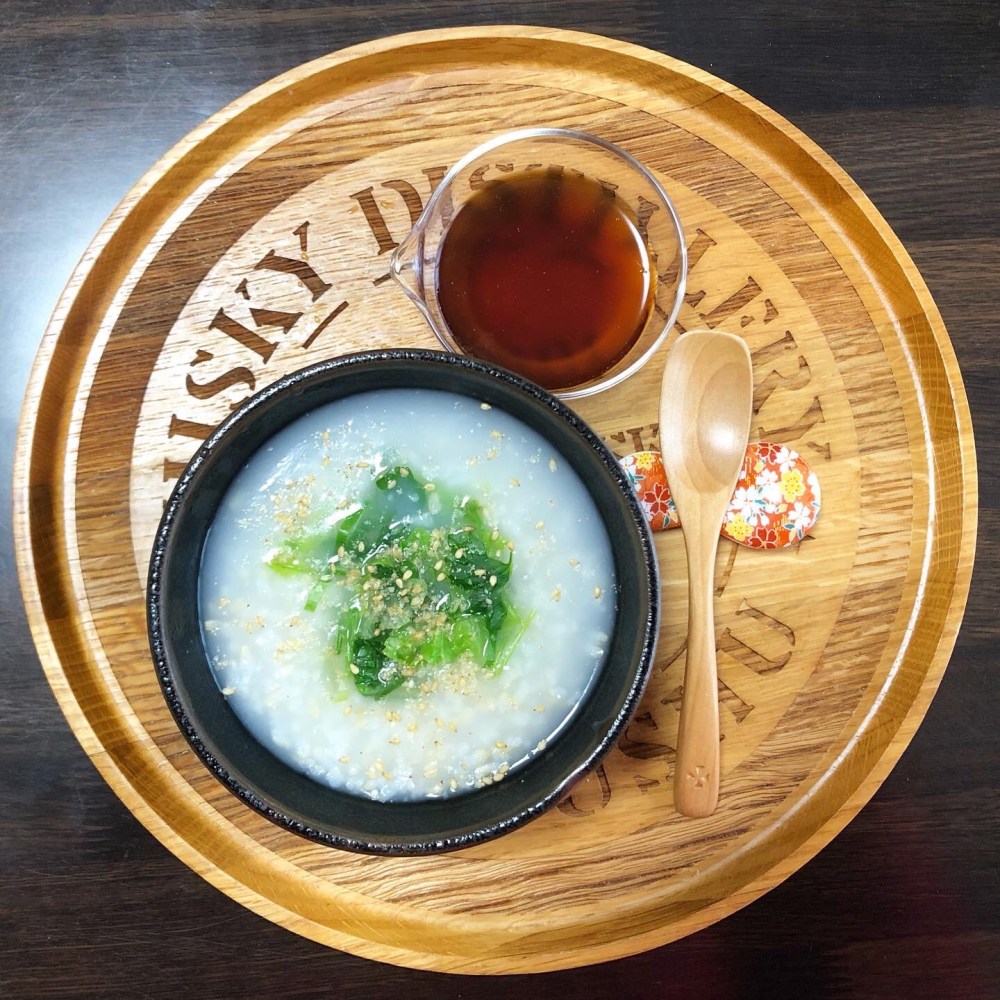さらさら系が好きなので、おおよそ五分粥です。七草はのっけ盛り。塩は少ししか入れてないので、葛餡をお好みで。