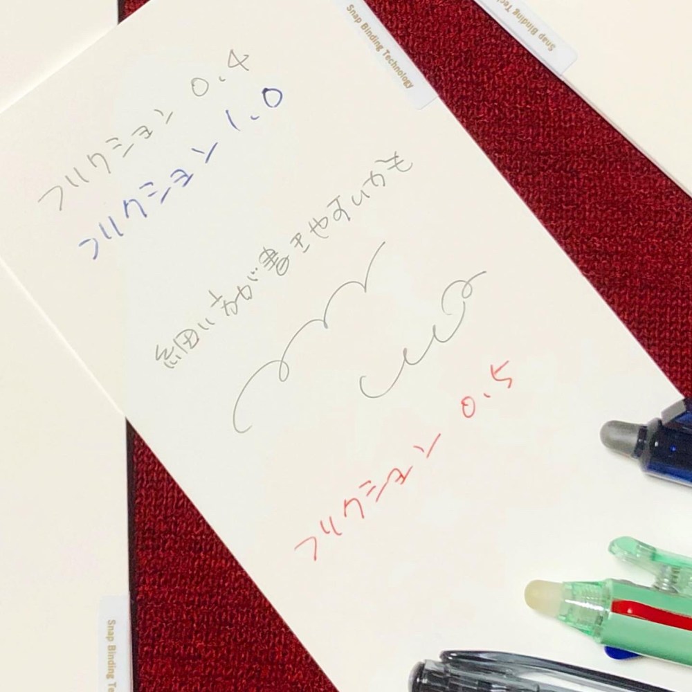 一番太いフリクション(1.0)だと、水性インクがやや浮きました。インクが乾くのに若干時間がかかるかもしれません。