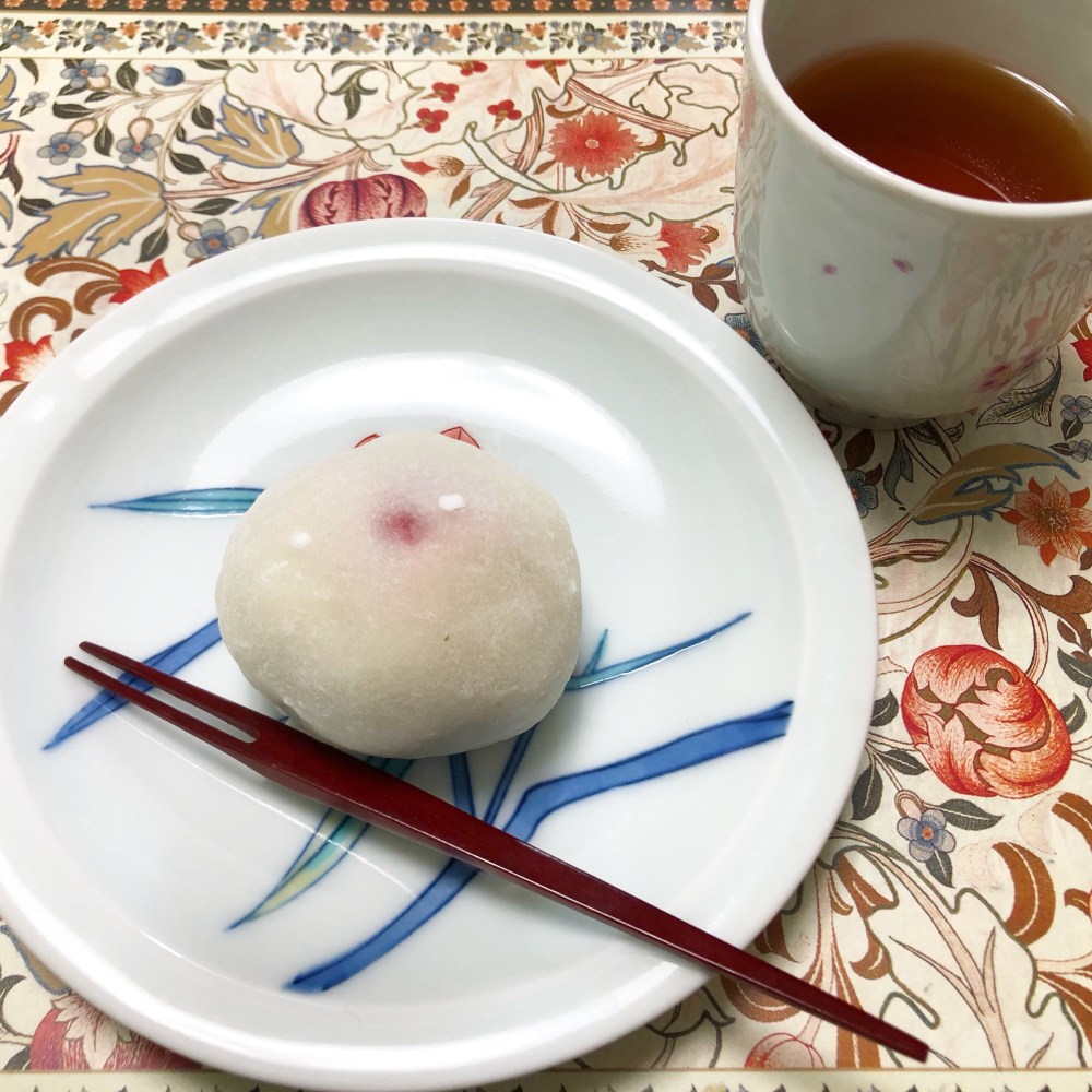 おやつは榮太郎総本舗の苺大福。日本橋三越限定なんだとか。
