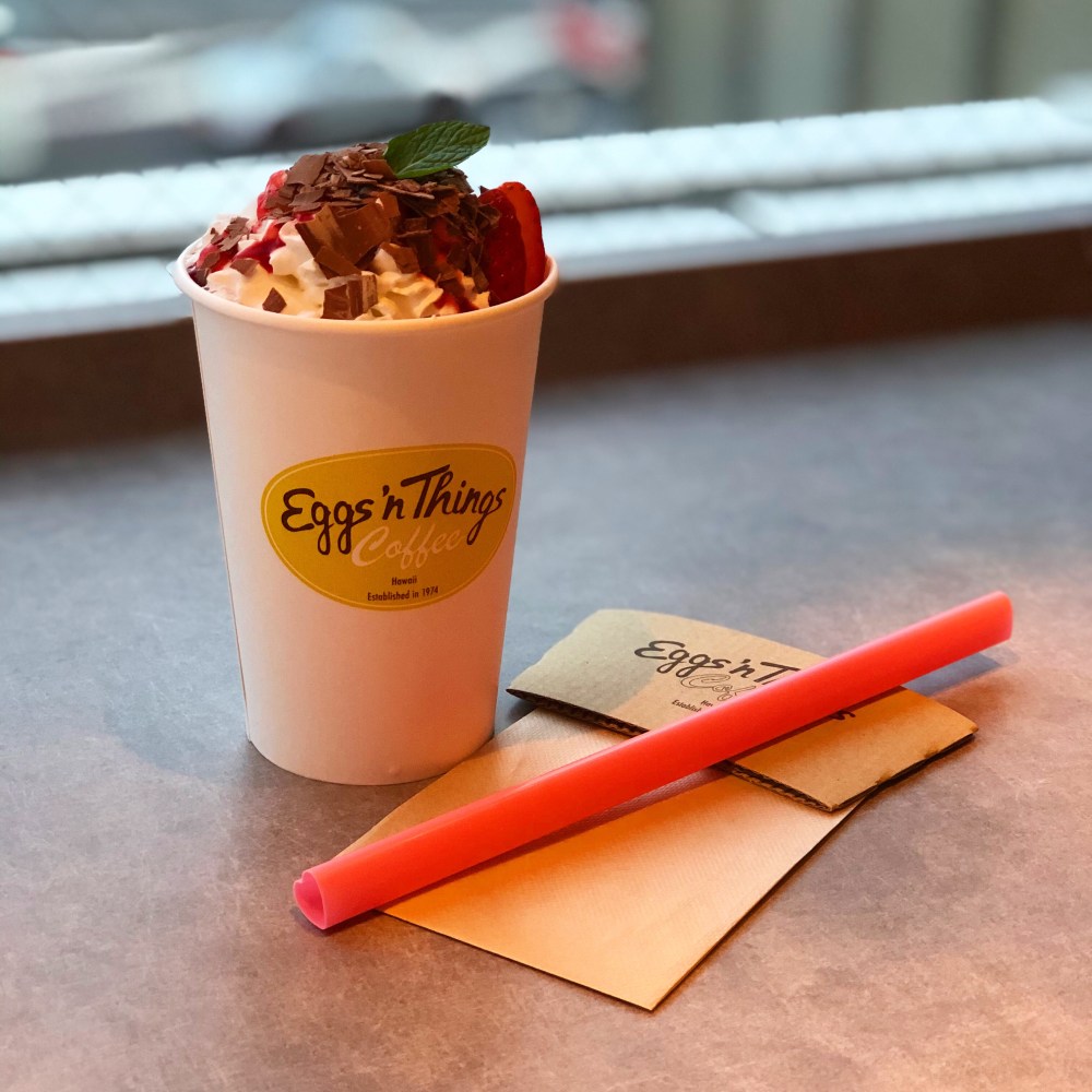買い物途中に一休みで、フレッシュストロベリーモカをば。