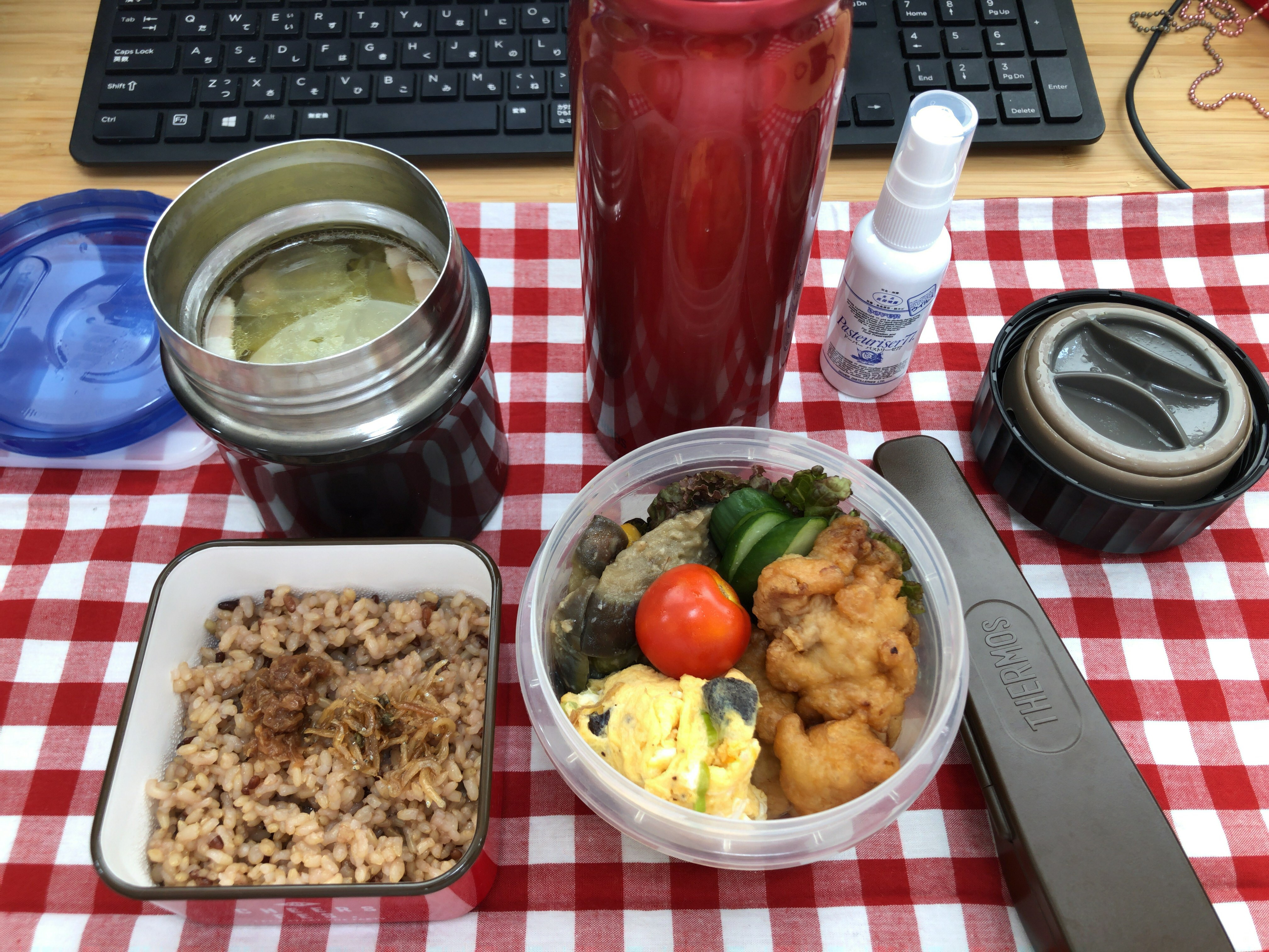 お弁当、雑穀玄米なので上にのせてる山椒じゃこと梅おかかが全く見えてません😅