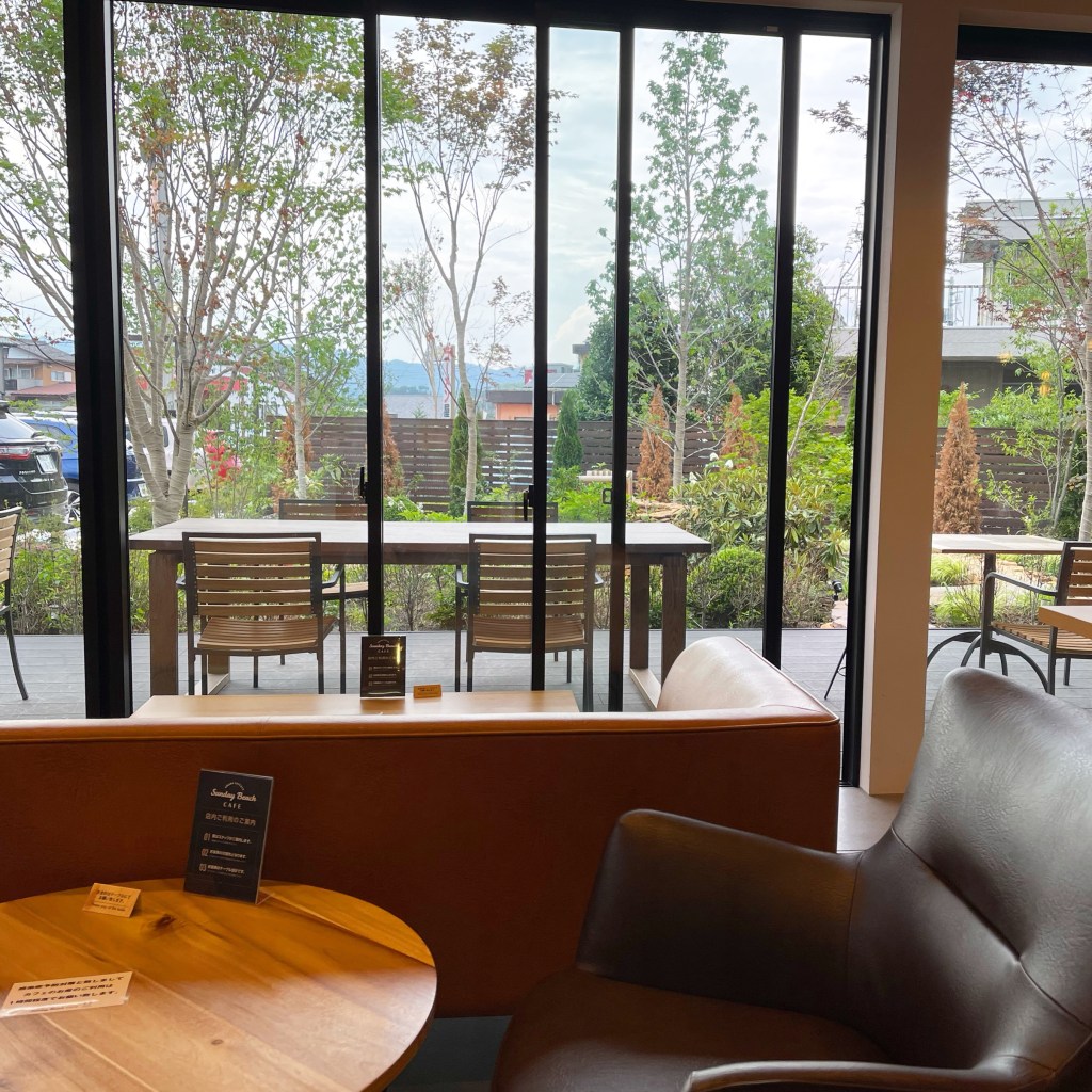 こんにちはー!こういうテラスいいなぁ。パラソルじゃなくて、軒が深い(って言うんでしょうか)ところが日本ですね。店内はまるでインテリアショップみたいでステキ。