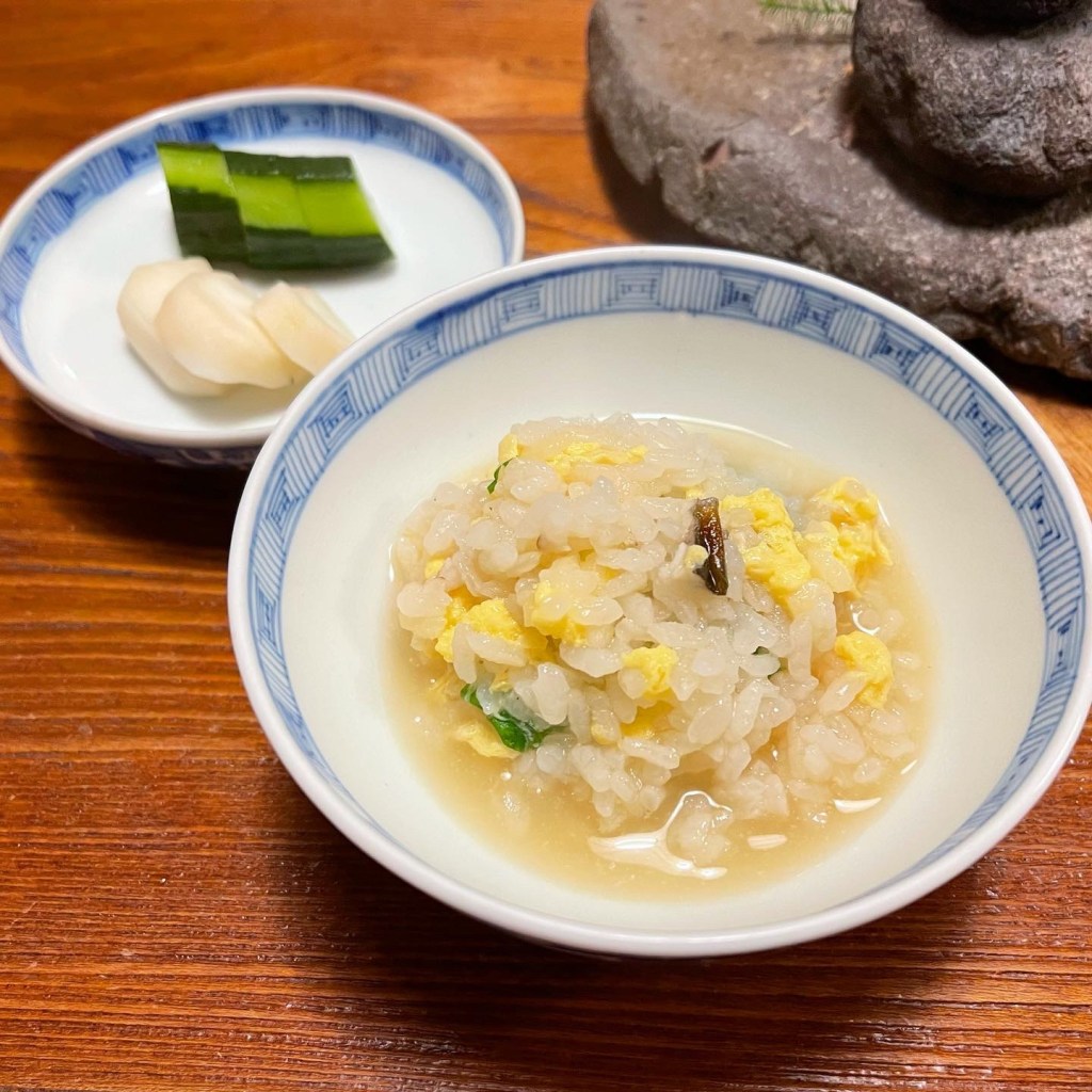 〆は鮎雑炊。まだぐつぐつ言ってました。旨いんだまたこれが!