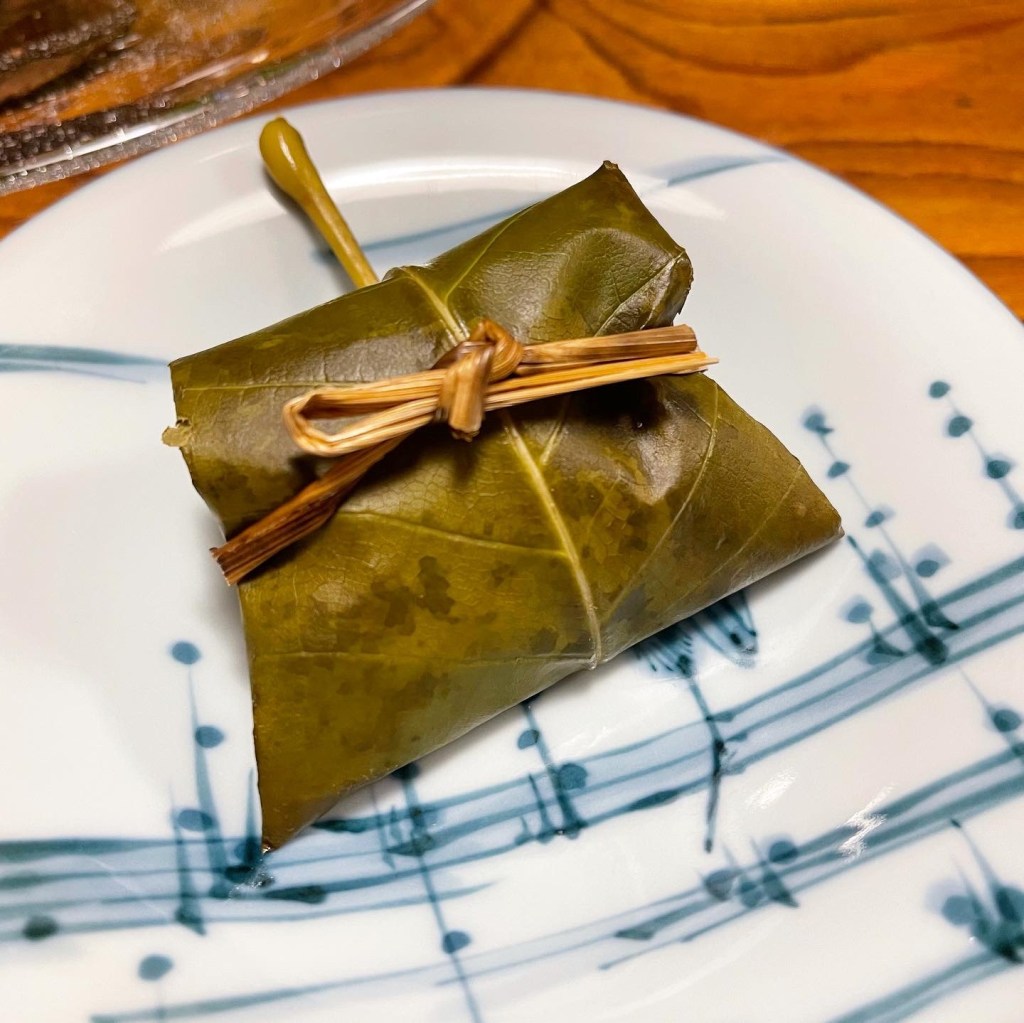 隠れて見えていなかった朴の葉寿司。もちろん鮎の蒸し寿司です。