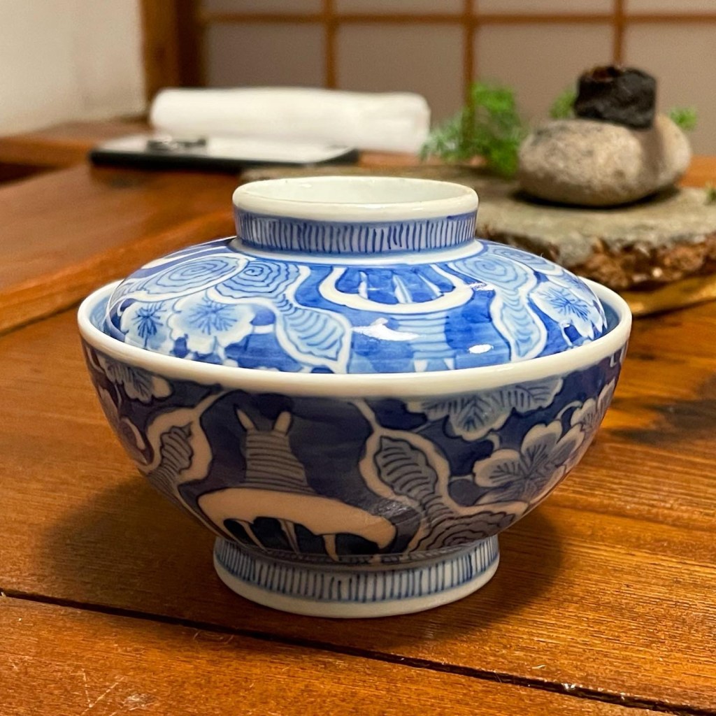 香の物のお皿とお茶碗、食べ終わって蓋を閉じたらこうなりました。