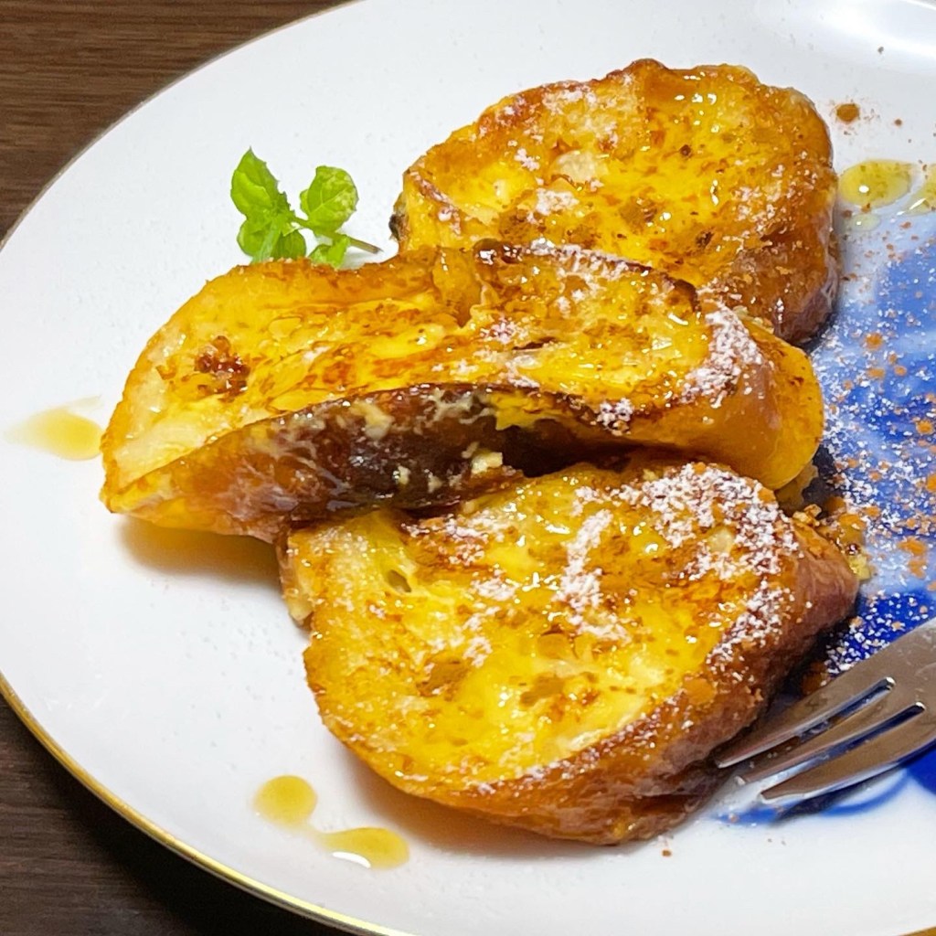 Food フレンチトースト 投稿者: KYO 投稿日: 2021-08-022021-08-03 薪窯焼きバゲットの余りを使って、休日の朝ご飯にフレンチトーストを作りました。 前夜から仕込んでおいたので、中までしっとり。 しかーし、これを焼いただけで、朝から汗だくデス。。。アイスティーを用意する気力がなくなり、常備している水出しアイスコーヒーで済ませました。 やっぱり夏の朝ご飯は牛乳シリアルフルーツかヨーグルト辺りが正解だよなぁと、しみじみ。 共有: クリックして X で共有 (新しいウィンドウで開きます) X Facebook で共有するにはクリックしてください (新しいウィンドウで開きます) Facebook クリックして Tumblr で共有 (新しいウィンドウで開きます) Tumblr クリックして Pinterest で共有 (新しいウィンドウで開きます) Pinterest いいね 読み込み中… 関連 投稿者: KYO ペンギン好き、美味しい物好き。投稿の殆どは食レポのみ。 たまーに風景とか温泉とか読書とか。 フォロー&リフォロー、リンクはご自由に。 連絡頂けた場合には喜んで見に行きます。 KYO の投稿をすべて表示