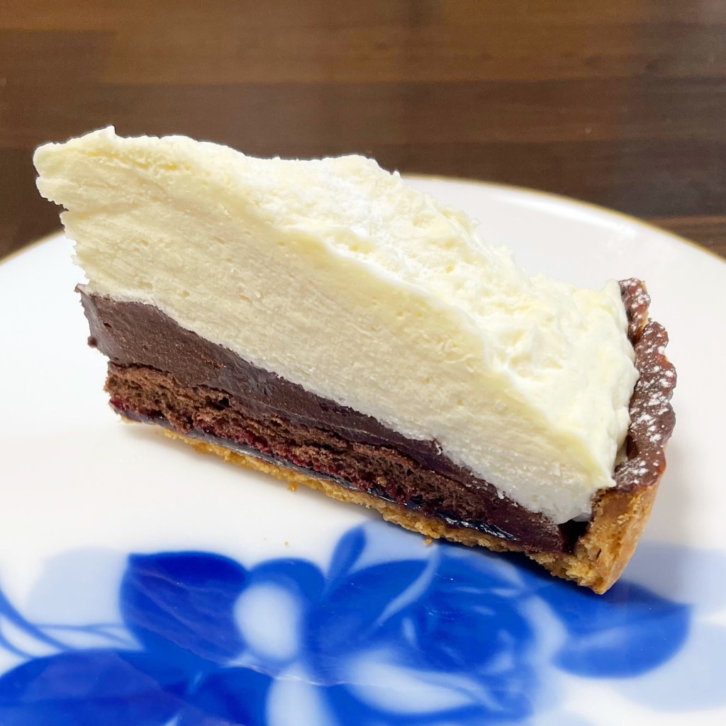 ケーキはチーズ系とチョコ系が多かったので、間をとって?木苺とチョコレートのレアチーズタルトを。