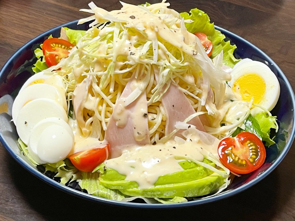 Food スパゲッティ野菜サラダ 投稿者: KYO 投稿日: 2021-08-25 夏の定番、スパゲッティ野菜サラダ 昭和の時代、コロラド橋本店で人気だったスパゲッティ野菜サラダを野菜増量バージョンで久しぶりに作りました。 パスタ75gなんですけど、野菜をたっぷり入れ過ぎたのか、正直、食べ過ぎでした。。。😅 当時のコロラドでは、スパゲッティグラタンとスパゲッティ野菜サラダが人気フードメニューの2トップでした。 スパゲッティ野菜サラダは橋本店のオリジナルメニューで、今ではもう味わえませんが、スパゲッティグラタンの方はまだコロラドのメニューに載っているらしいです。 共有: クリックして X で共有 (新しいウィンドウで開きます) X Facebook で共有するにはクリックしてください (新しいウィンドウで開きます) Facebook クリックして Tumblr で共有 (新しいウィンドウで開きます) Tumblr クリックして Pinterest で共有 (新しいウィンドウで開きます) Pinterest いいね 読み込み中… 関連 投稿者: KYO ペンギン好き、美味しい物好き。投稿の殆どは食レポのみ。 たまーに風景とか温泉とか読書とか。 フォロー&リフォロー、リンクはご自由に。 連絡頂けた場合には喜んで見に行きます。 KYO の投稿をすべて表示