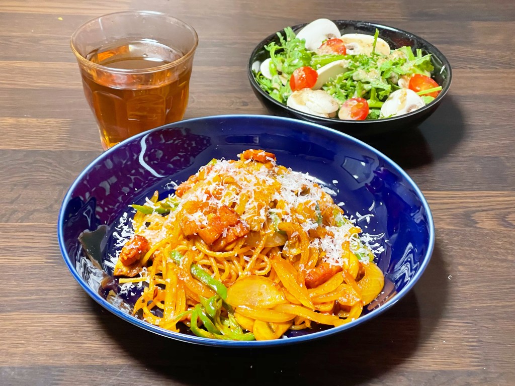 Food ナポリタン 投稿者: KYO 投稿日: 2021-10-172021-10-17 土曜日のお昼は久しぶりにひとり飯でした。という訳で、恒例の?在り物 de ナポリタン! 何というか、フライパンで焼いてます感のしっかりある昭和な奴が食べたかったので、トマトケチャップもガッツリ焼き付けてからパスタに絡めました。仕上げに少々追いケチャップもしつつ。 定番のマッシュルームと春菊のサラダは胡麻味噌ドレッシングで。 共有: クリックして X で共有 (新しいウィンドウで開きます) X Facebook で共有するにはクリックしてください (新しいウィンドウで開きます) Facebook クリックして Tumblr で共有 (新しいウィンドウで開きます) Tumblr クリックして Pinterest で共有 (新しいウィンドウで開きます) Pinterest いいね 読み込み中… 関連 投稿者: KYO ペンギン好き、美味しい物好き。投稿の殆どは食レポのみ。 たまーに風景とか温泉とか読書とか。 フォロー&リフォロー、リンクはご自由に。 連絡頂けた場合には喜んで見に行きます。 KYO の投稿をすべて表示