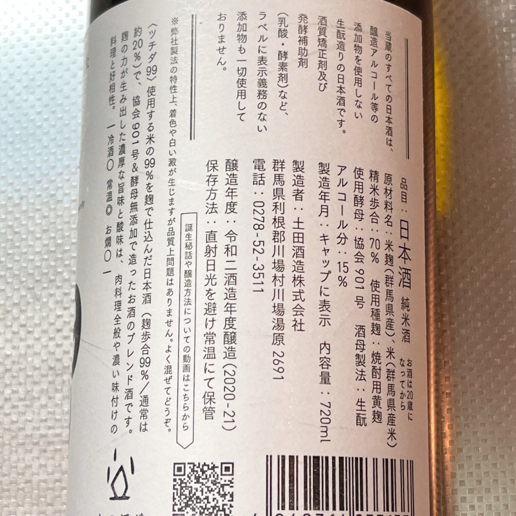 お酒は群馬土田酒造さんより TSUCHIDA99 を開けました。ほぼ全麹仕込み、つまり麹歩合が99%という、ちょっと変わった日本酒です。