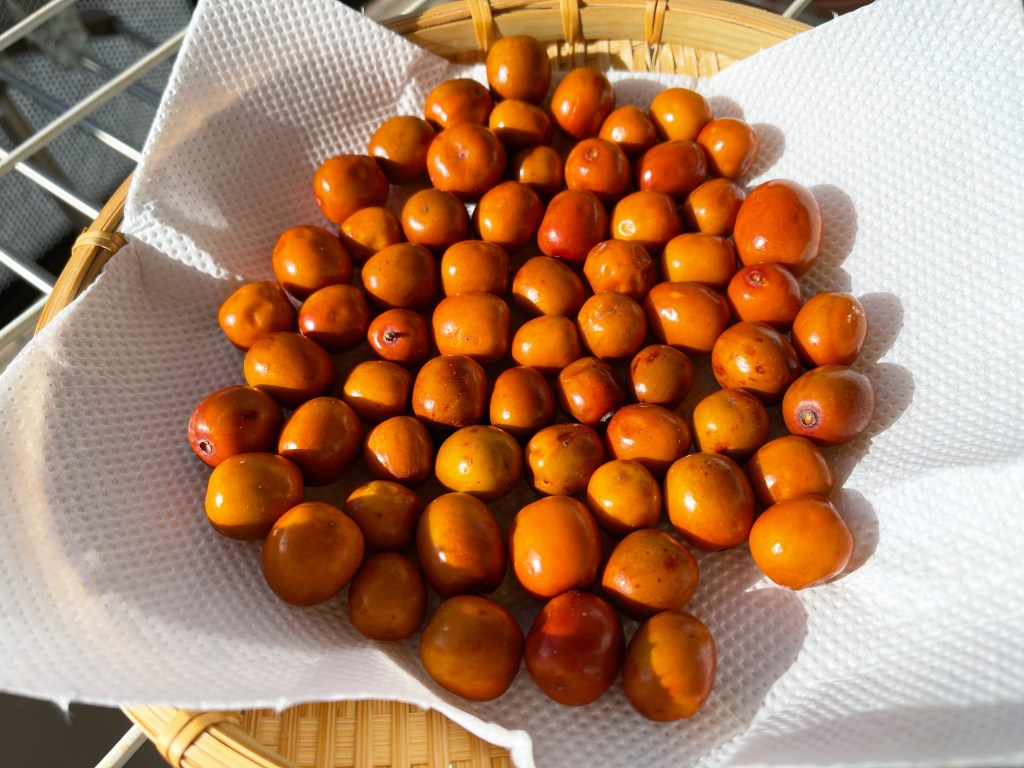 棗は少しだけ生で食べてから、干し棗にすべく現在絶賛天日干しちう。しばらく毎日晴天で助かってます。
