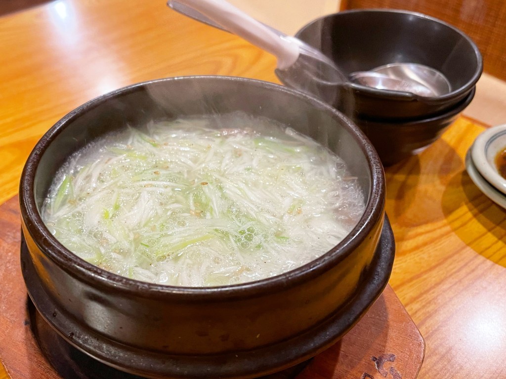 〆のテールスープ!! グツグツと美味しそうです♪ チヂミも食べたいと思いながら、最近全然作っていませんでした。どれもこれも美味しそう。レバーが食べたい。