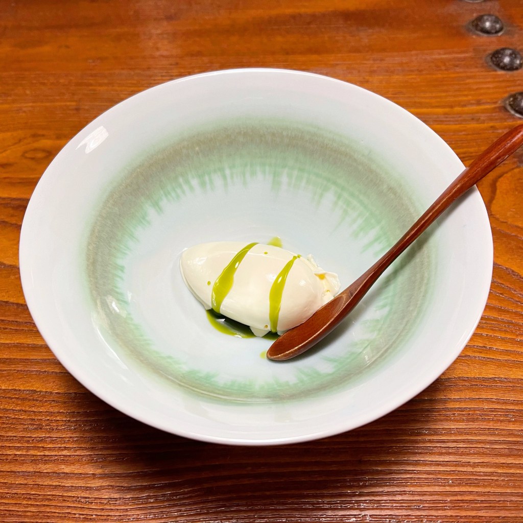 中川村の自然薯の上に、なめろうと秋のびる、フィンガーライムに二十日大根と様々な食感が楽しめました。なめろうの塩味がとろろで中和されて良い感じ。
