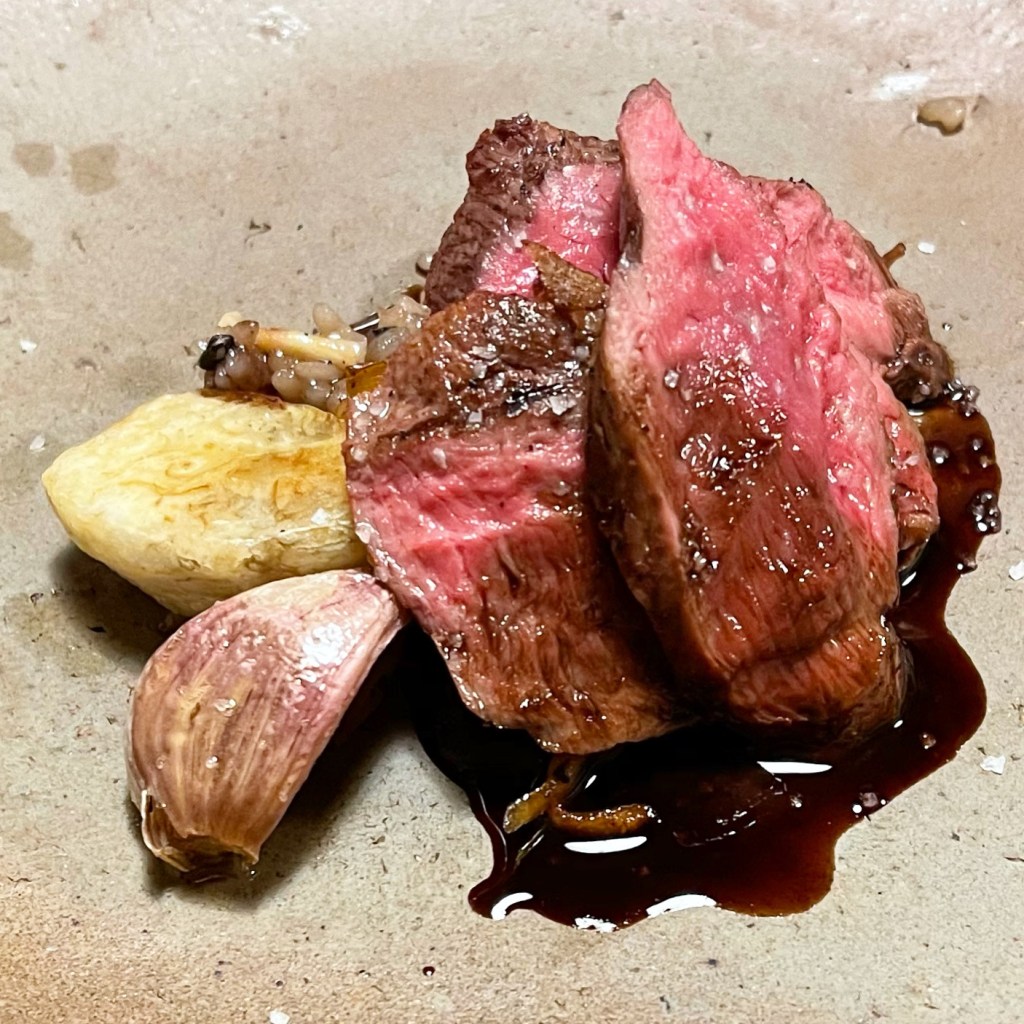 メインは鹿肉のロースト、赤ワインソースでした。