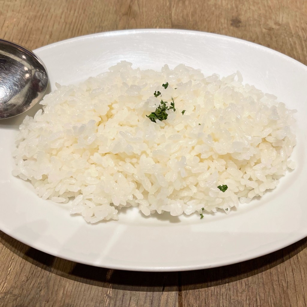 小盛りライスもあったものの、量を考えてシェアすべく普通盛りライスを1つだけ頼んだところ、取り皿とスプーンまで一緒に持って来てくれました。心遣いがありがたや〜。