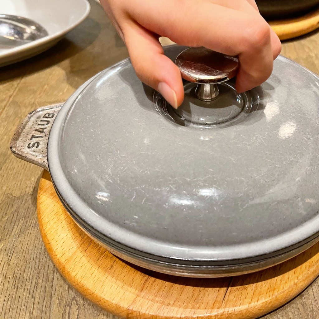 とても肉肉しいハンバーグで、久しぶりに牛肉食べたー!という気分になりました。STAUBで蒸し焼きにされたハンバーグにワインというのも、なかなかオツな物ですね。味付けも選べて蒸し野菜がたっぷり食べられるというのもナイスでした。