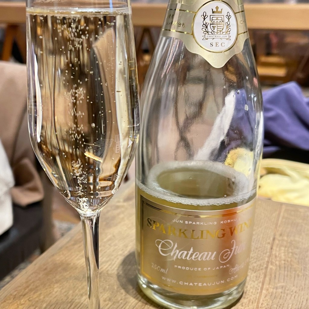 山梨で飲み損ねたシャトー・ジュン のスパークリングがあったので、それにしました。甲州100%で、中口(SEC 薄甘口)とあり、結構甘めでした。