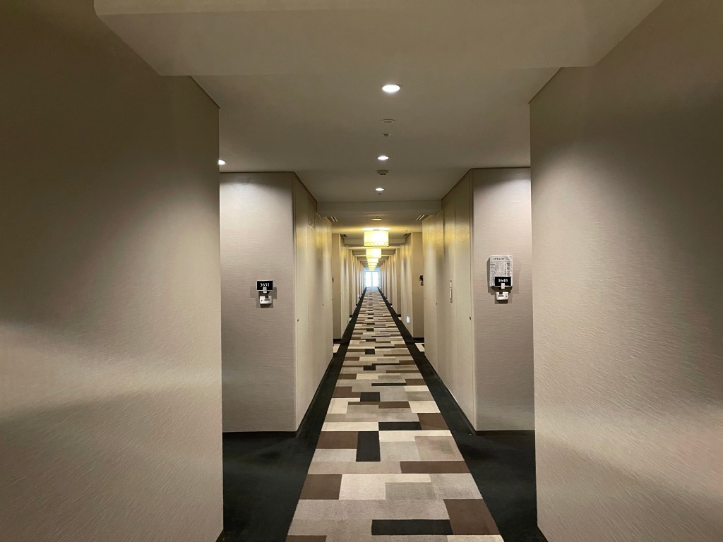夕飯後のチェックインだったので、20時半頃のことでした。フロントで「角部屋にアップグレードしておきました♪」と言われたものの、部屋が最奥らしく、と、遠い。。。