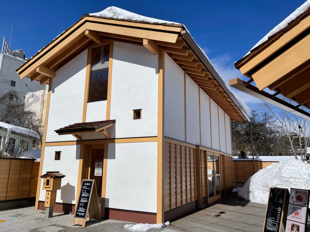 湯畑から徒歩数分離れた裏側の地域を裏草津と呼ぶようです。地蔵温泉の先の階段を登った所に去年出来たばかりのカフェと漫画図書館があったので、寄ってみました。