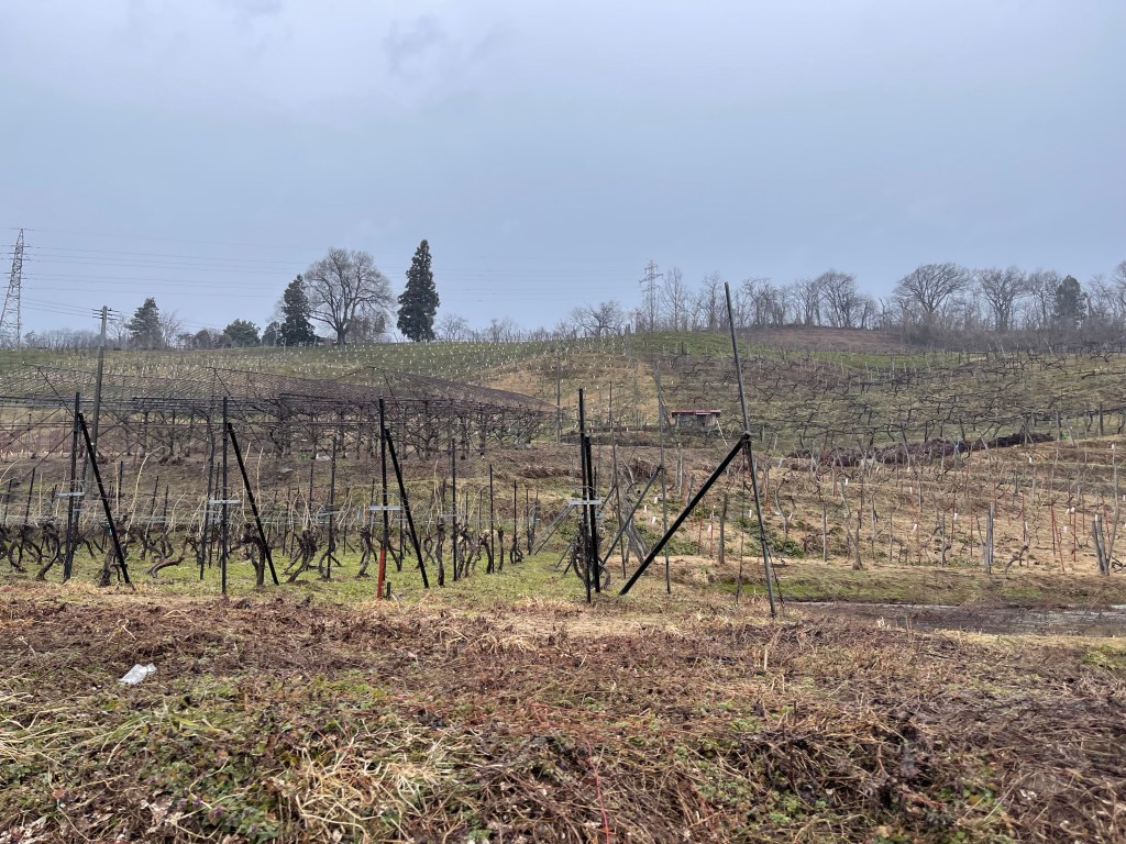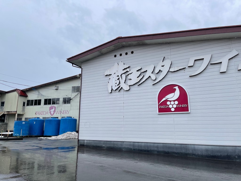 余談ですが、倉庫に書かれている蔵王スターワインはタケダワイナリーの商品名ですが、2017年産を最後に無くなり、現在では、タケダワイナリールージュと同ブランという名前になっています。