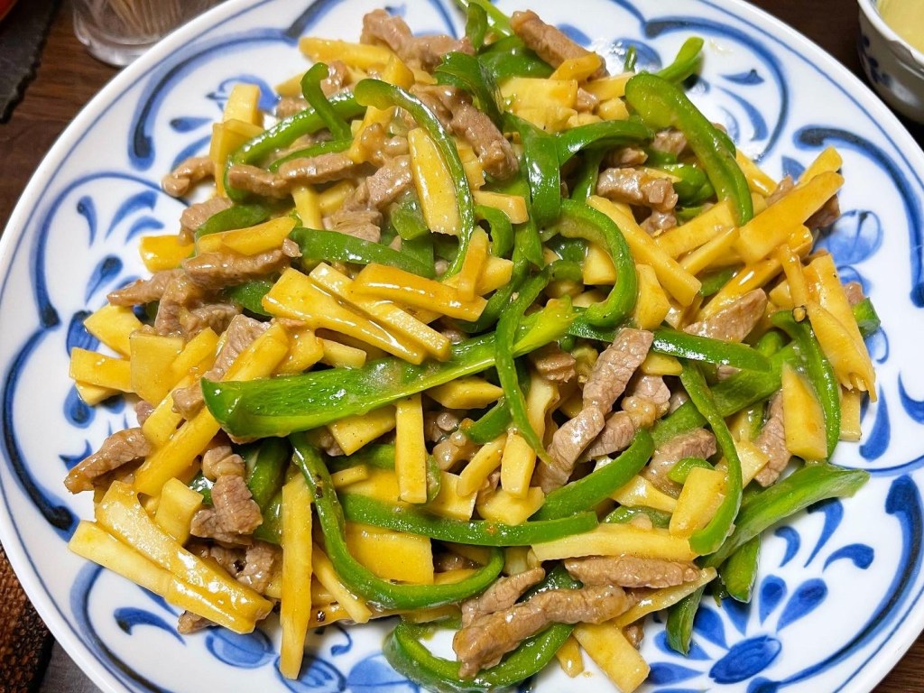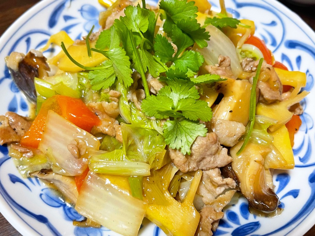 豚肉と筍と原木椎茸のオイスター&ナンプラー炒め