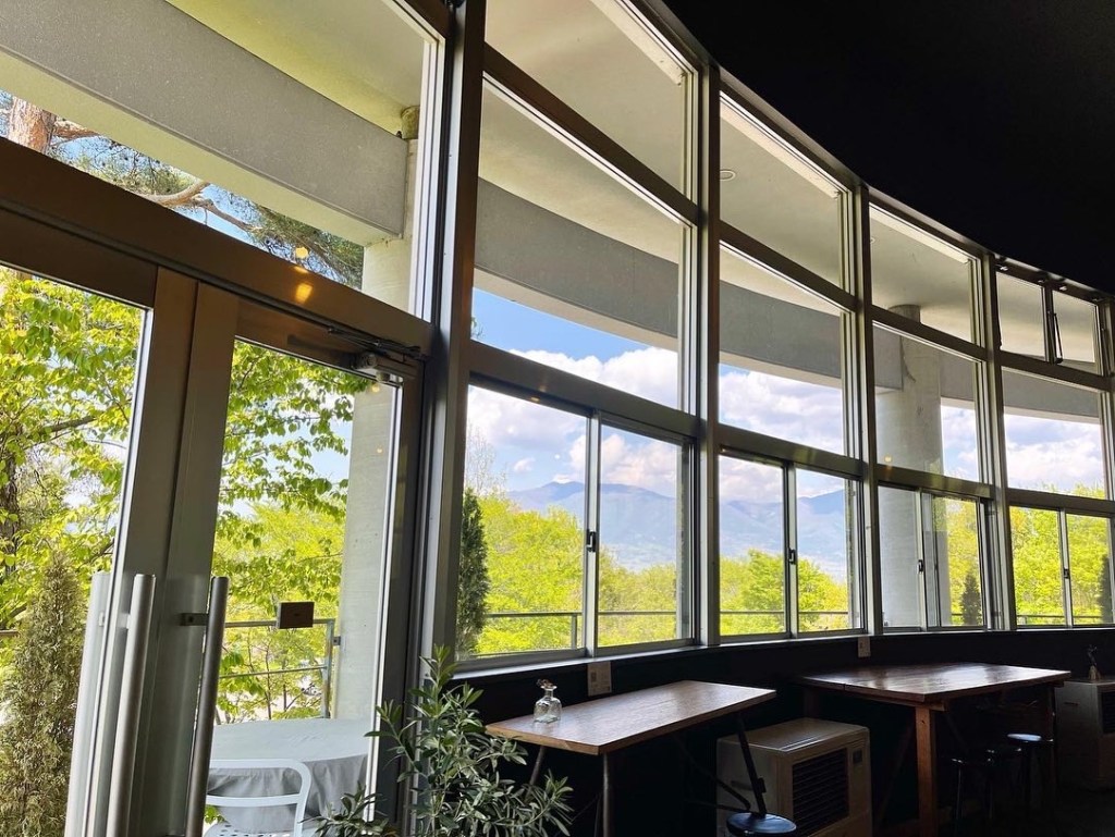 大きな窓から景色を眺めながらのコーヒータイム!良いですね~。