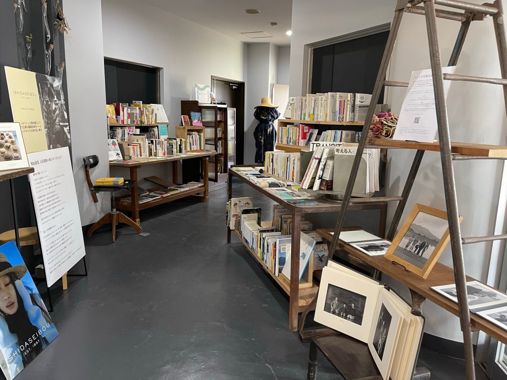 お店の中央に商品があり、壁際や窓際がカフェの席になっていました。本で見えていない側には器などの雑貨類や衣服等が売られていました。