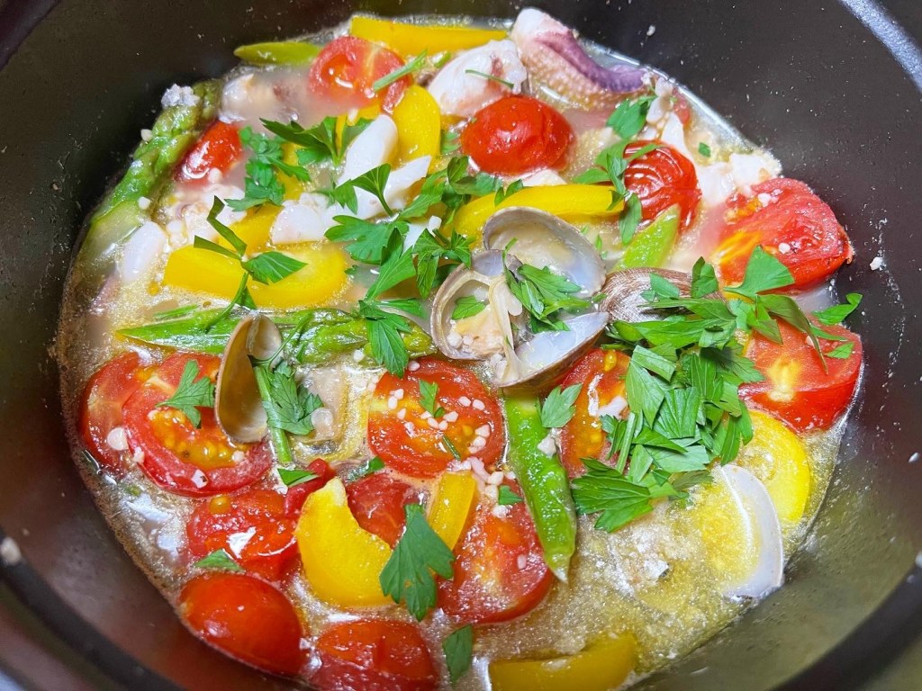 アクアパッツァ、色々いれると美味しいですよね〜。