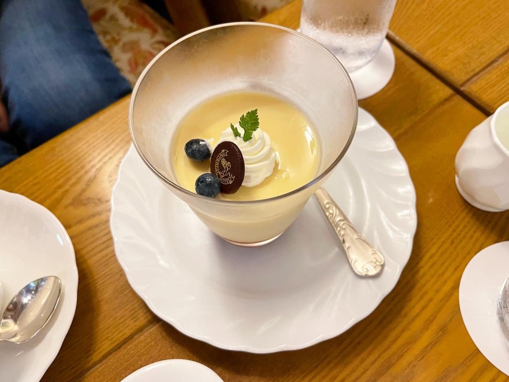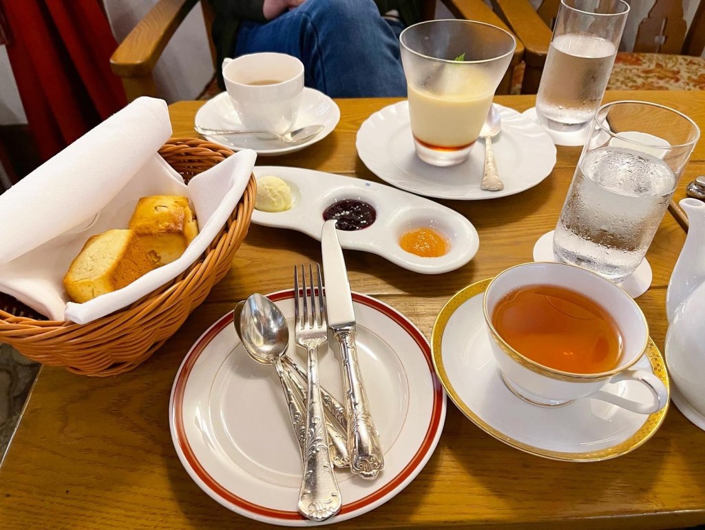 カスタードプリンセットは一日限定20食。オットのお気に入りプリンです。ちなみにこちらの紅茶も無料でお代わりを注いでくださいました。