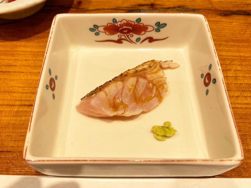 オキシジミ、初めて食べました。味が濃厚で甘みがあり、このお椀は酒蒸しを澄まし仕立てにしている(無水)ので、汁までしっかり激うまでした。板さんのお父様は沖シジミの季節になると栃木からわざわざ食べに出て来るんだとか。その気持ち、分かる気がします。