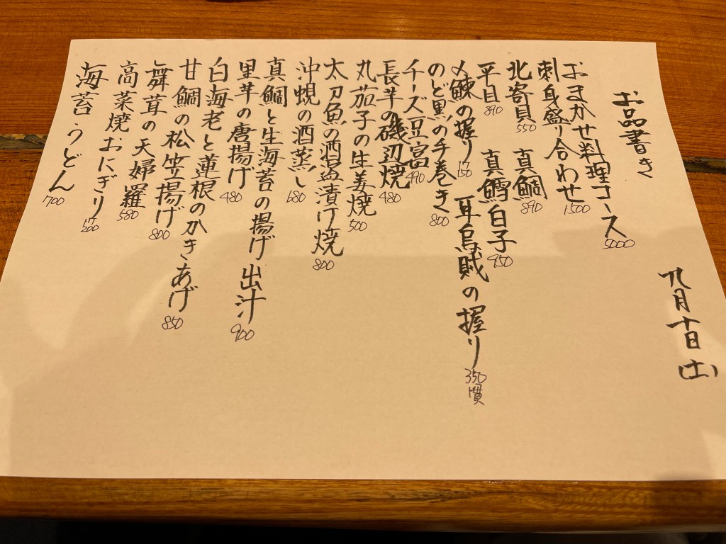 数人で行って盛り合わせや単品を上手く頼んだら、さらにリーズナブルになるかもしれませんが、少人数ならお任せコースがおススメかなーと思います。