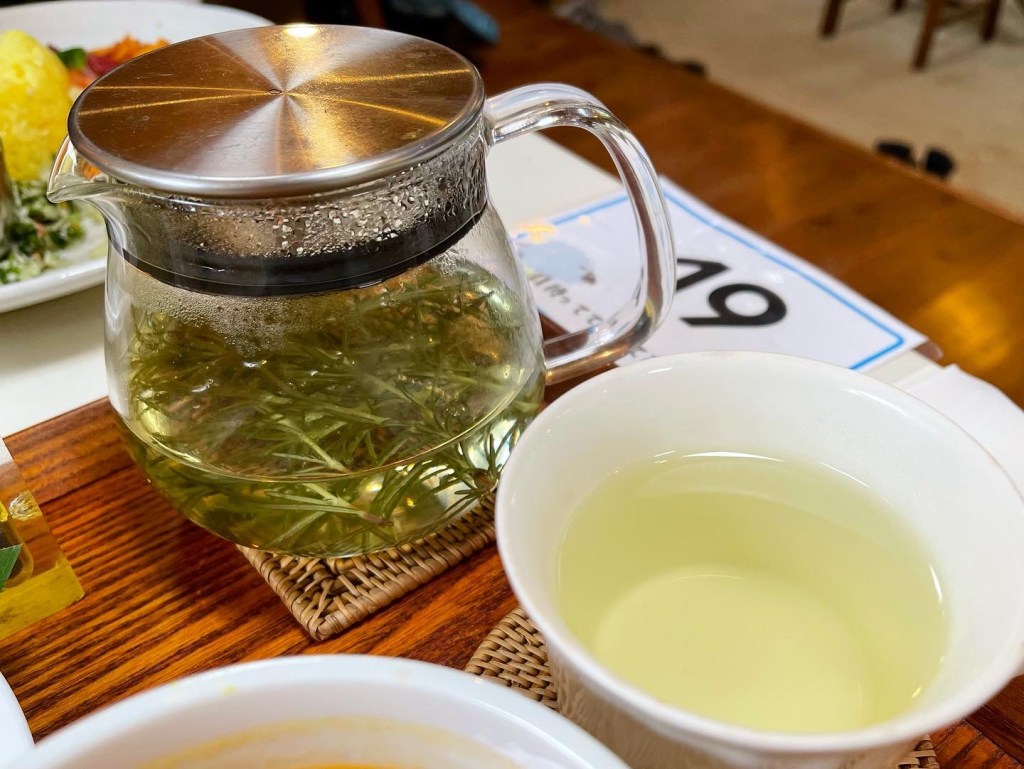 飲み物は自家菜園からつみたてのフレッシュなローズマリーティーを。