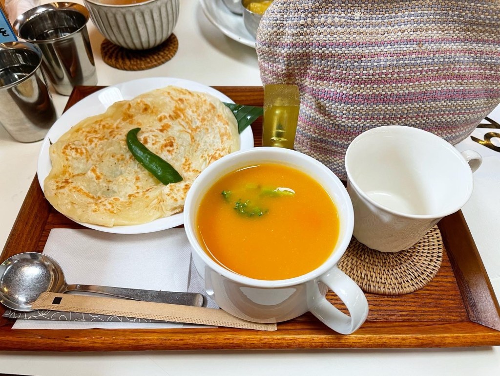 もう一つは季節のスープセットをパラータ(ナン)で。