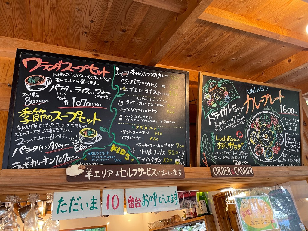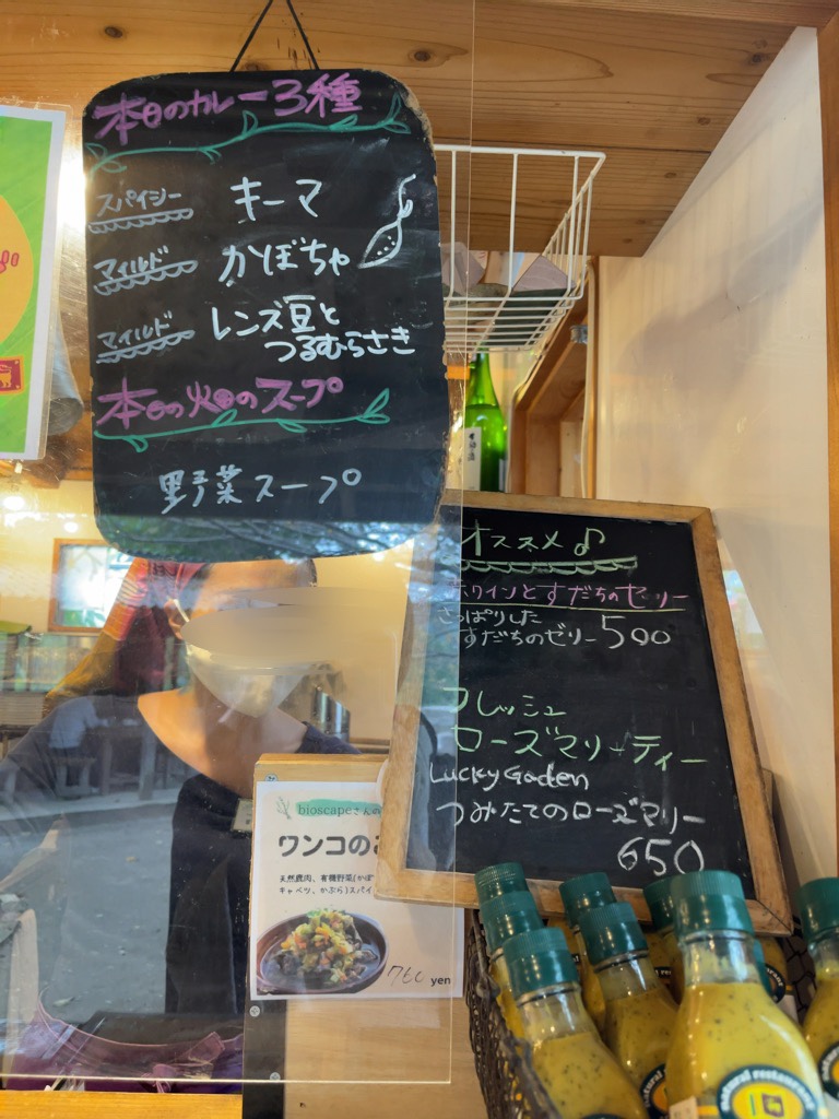 注文時には人が沢山おり、その後雨も降ってきて、母屋の全景写真は撮れませんでした。メニュー看板からも雰囲気は伝わるかと思いますが、山小屋風の手作りっぽい建物でした。