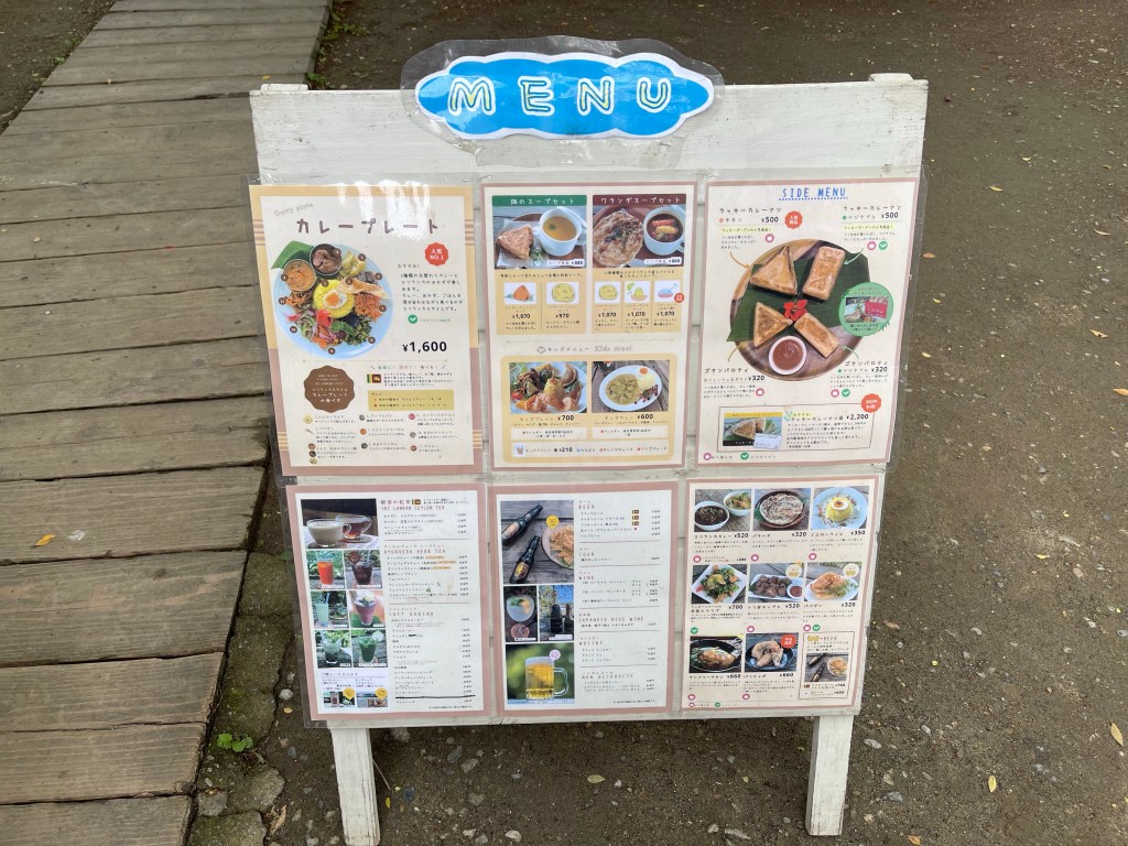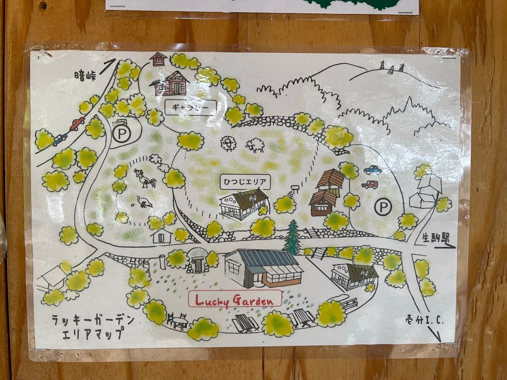 敷地マップを見る限りでは、かなり広そうでした。この日は雨で使われていませんでしたが、野外に置かれたテーブル席もそこそこありました。これからの季節、天気が良ければ外のテーブル席も良さそうですね(^-^)