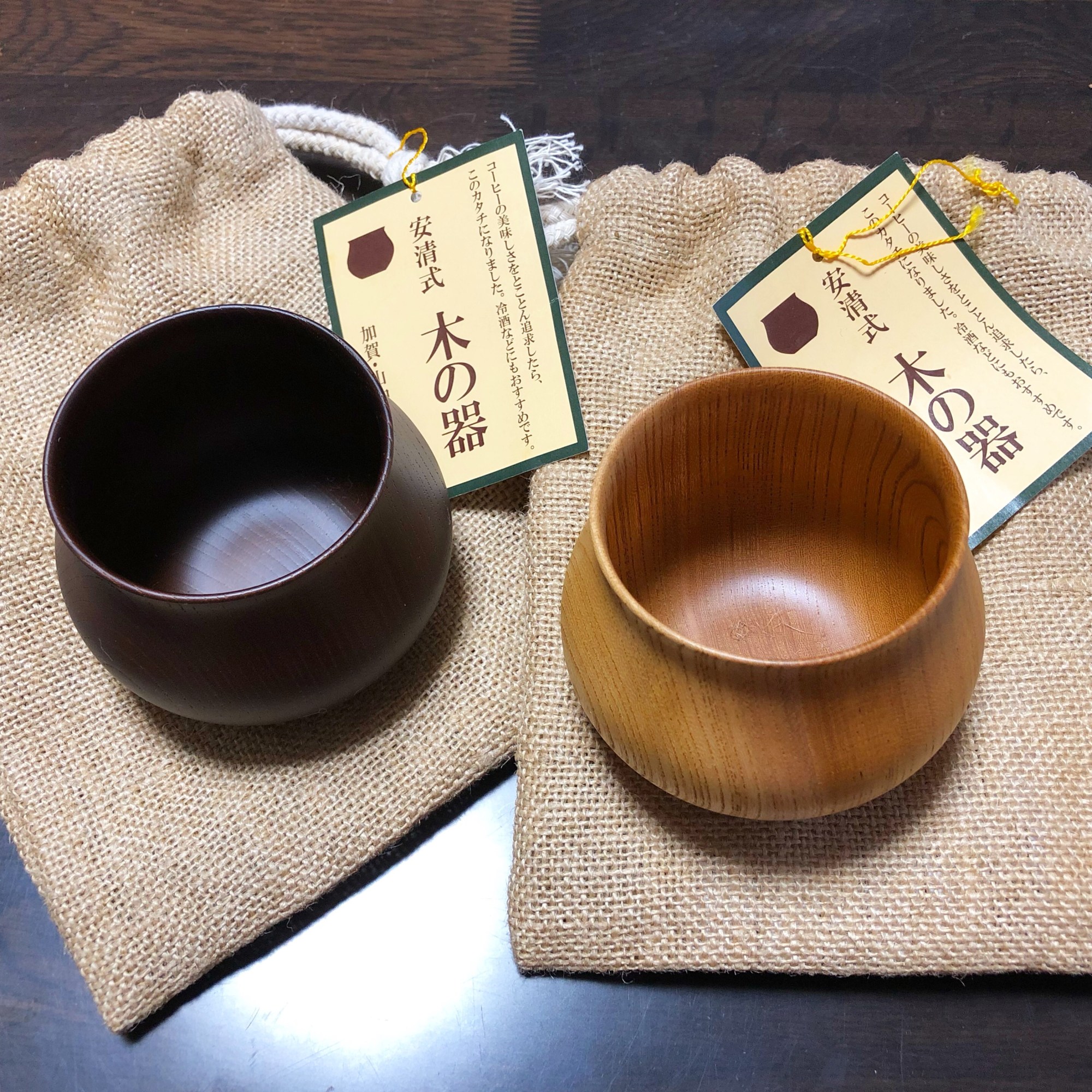 安清式カップですが、量が160ccなので、ハンドドリップで淹れる時にはよく使っています。薄い木の口当たりや口に入る量、また鼻に香りが来る感じがとても良いので、特に温かくて香りを楽しむタイプの飲み物に向いているんではないかと思います。作者は冷酒にもおススメと仰ってるようです。