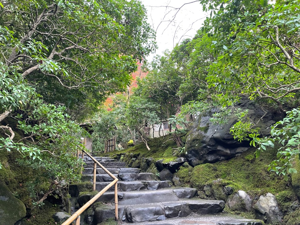 瑠璃の庭というそうです。薄曇りの中にも関わらず、鮮やかな緑が目に入り、とても素敵だと思いました。