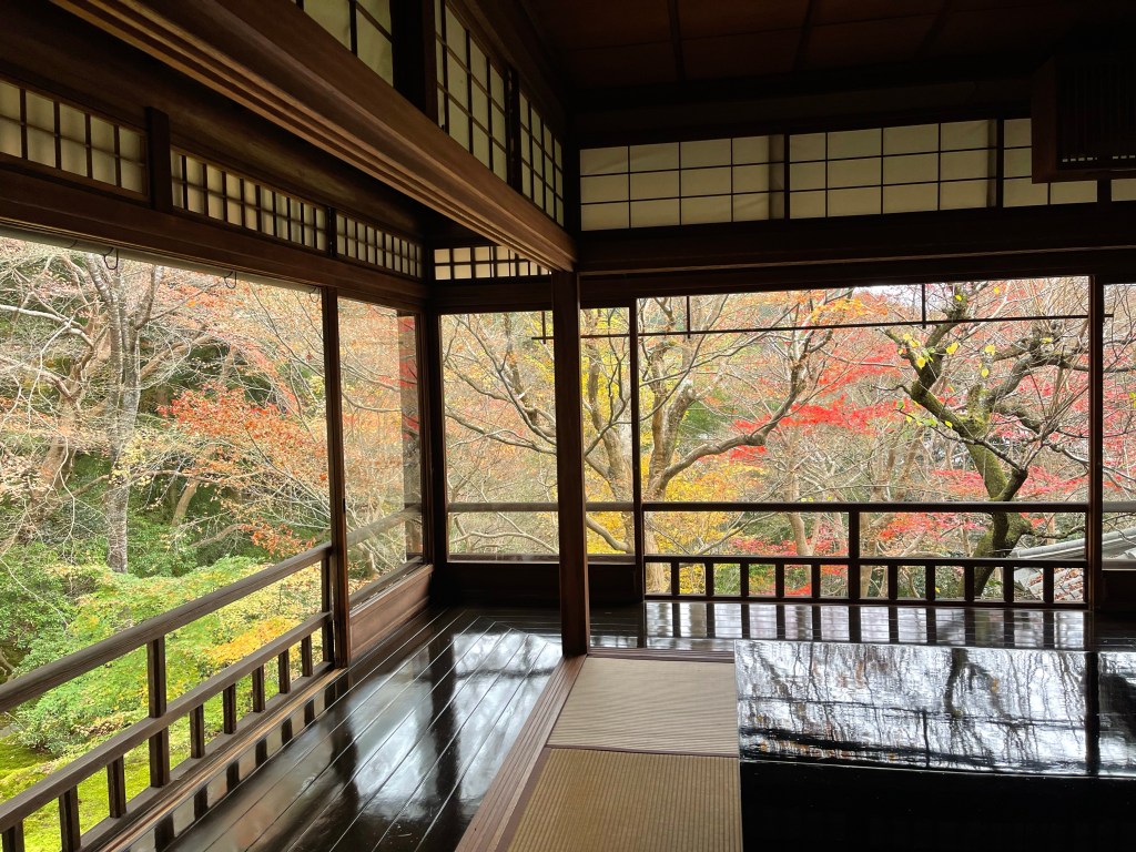 以前から、紅葉が美しいという瑠璃光院に行きたくて、転居して来て間がない頃すぐに予約申し込みをしたのですが、時、既に遅しだったようで、結局、取れたのは最終日の12月4日でした。それもあり、ずっと「紅葉、遅れろー遅れろー」と念じておりました😅