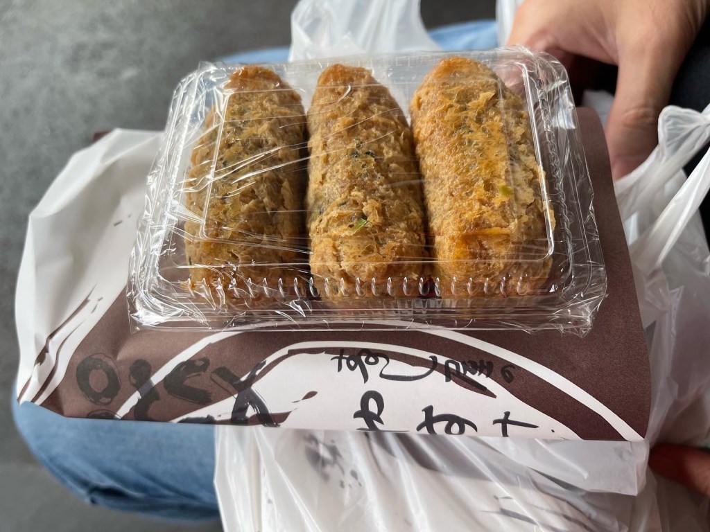 やすけさんのお寿司は、美味しい上に安くてボリュームたっぷりなので、いつも行列が出来ているのですが、今回は雨が上がったばかりだったせいか、ほぼ並ばずに買えてラッキーでした。(この後、すぐ行列が出来ていました)