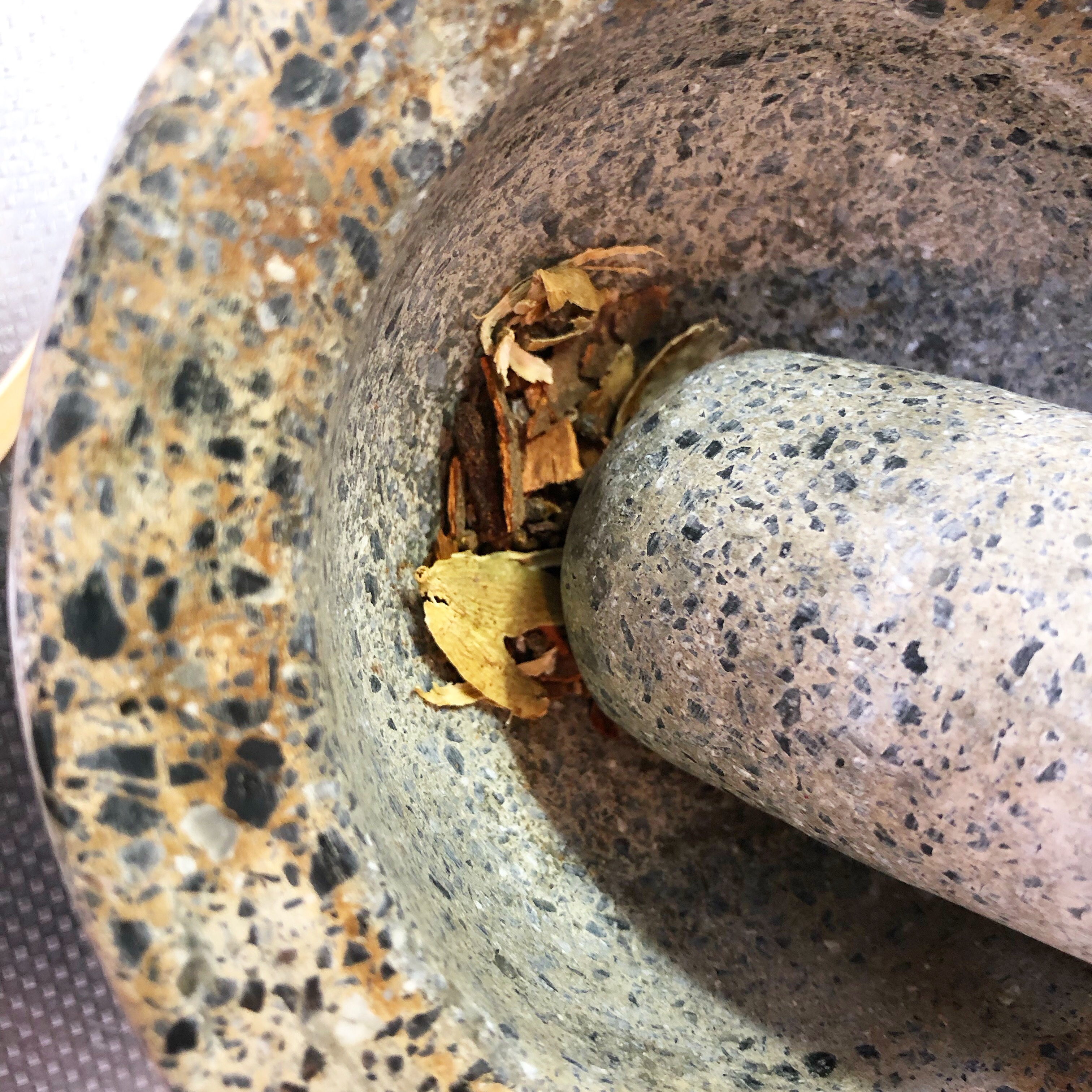 ホールスパイスを石のすり鉢(クロックヒン)ですり潰し、粉にして使うこともあります。