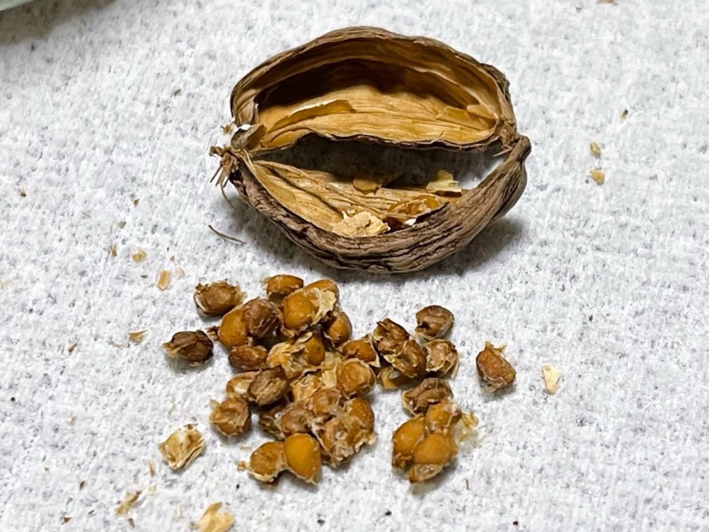 ブラックカルダモンは普通のカルダモンよりかなり大きく、やや独特のクセがあります。実際に使う種で比較すると5割増しか倍くらいな感じです。