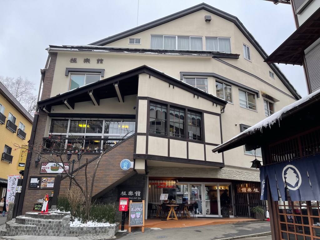 今回は湯畑から徒歩3分の極楽館 に宿泊しました。素泊まり専門のお宿です。