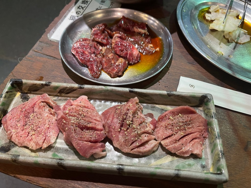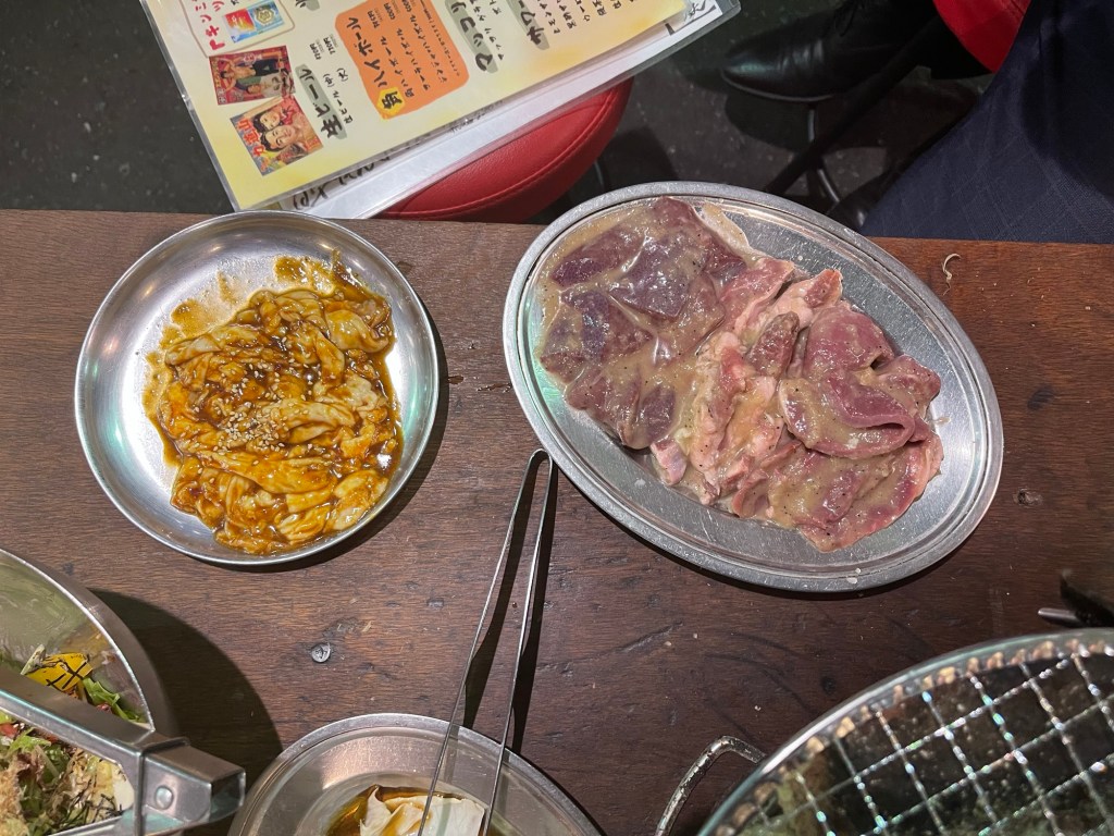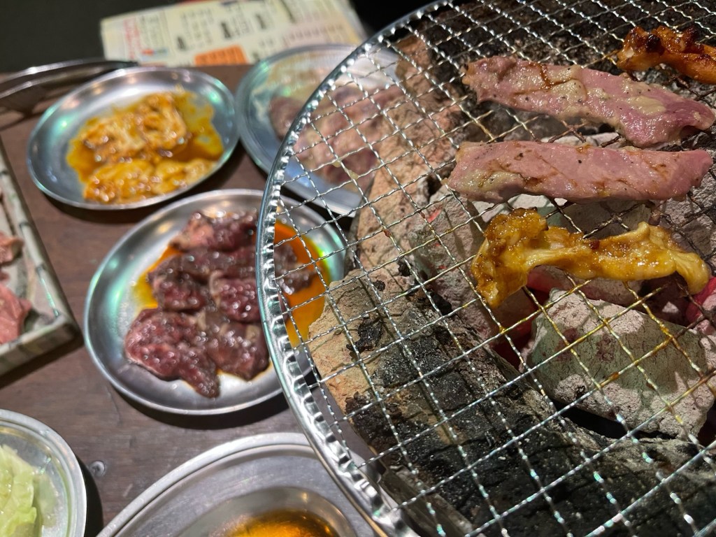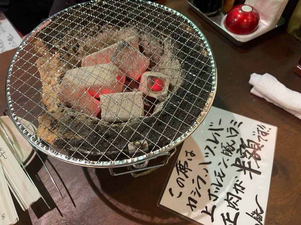 エアコンの無い店の外で人と電車が真横をガンガン通り過ぎて行くのを眺めつつ、焼肉を、それも七輪で炭火焼きというのは、若干我慢大会に近い感じもしないではないのですが、夜、風があればまあまあ耐えられるレベルかなーと思います。