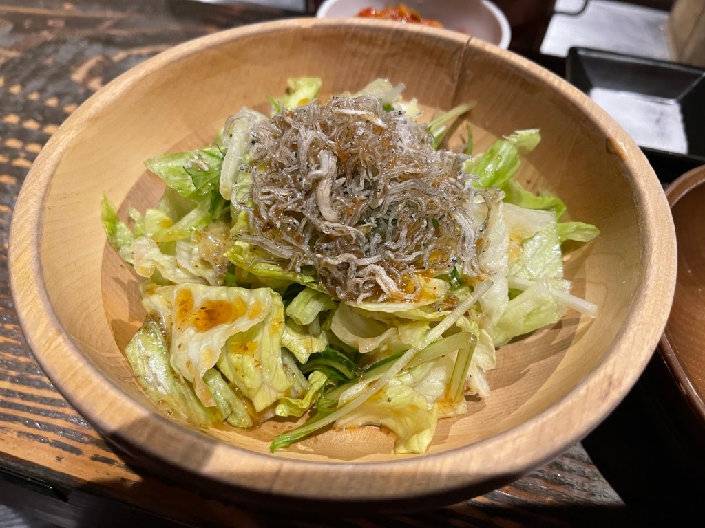 副菜は和風サラダとキムチを頼みました。どちらも美味しかったのですが、野菜をお代わりするなら無くても良いかもです。(正直食べ過ぎましたので)
