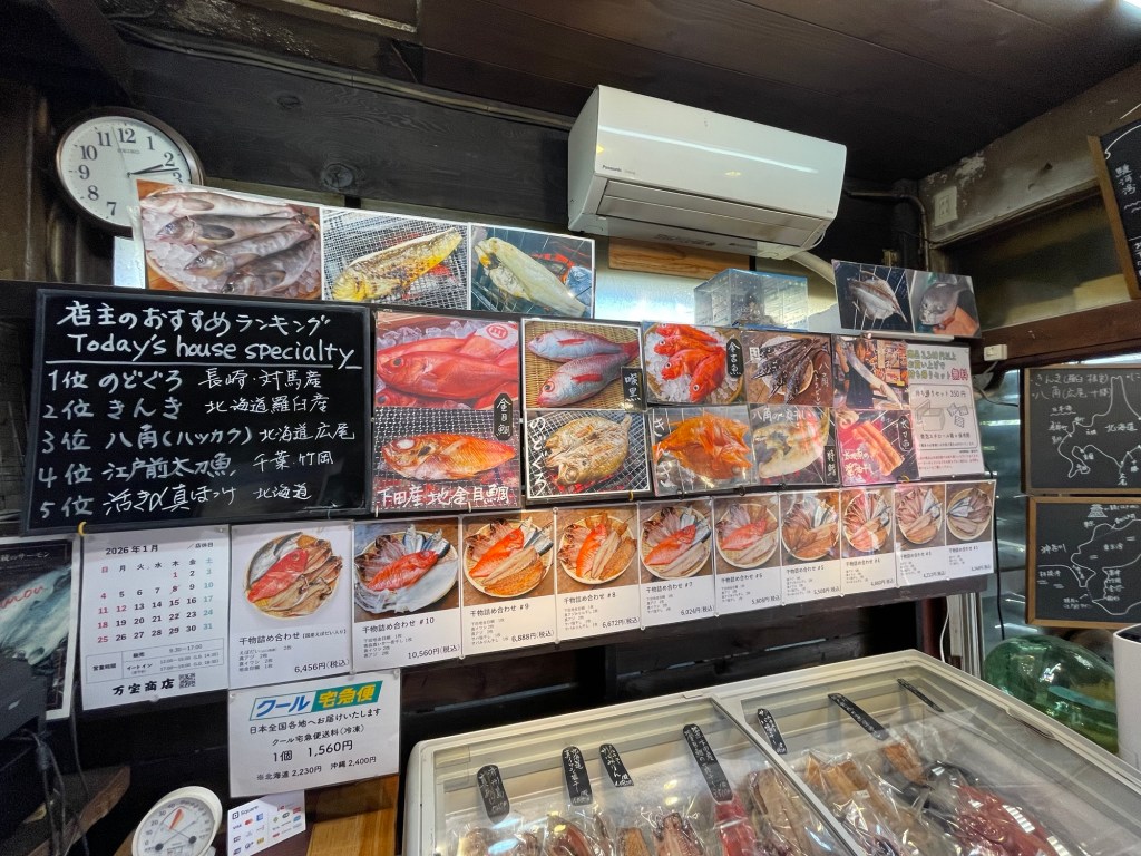 店内には干物の説明書きが写真付きでびっしり並んでいました。