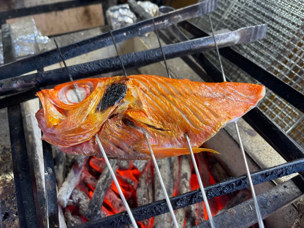 金目鯛をその場で備長炭で焼いて食べれるなんて至福のひと時ですね。焼き具合も上手下手が有ると思いますが、たっぷりの切れ目がかなり助けてくれそうです