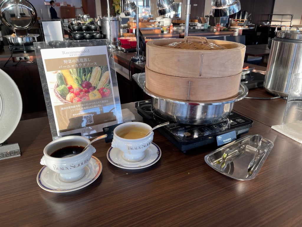 ホテル中央にあるレストランかもめで朝食ビュッフェを楽しみました。