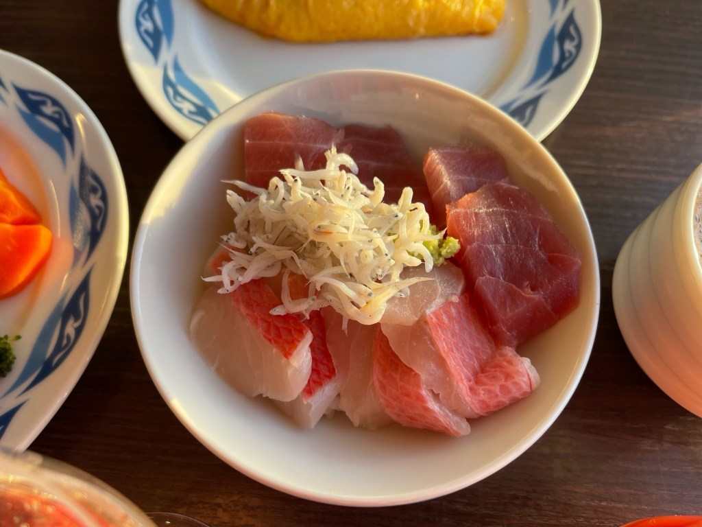 和食メニューが充実しており、自分で具を選べる金目鯛とマグロの海鮮丼とわさび丼、豪華なあら汁に揚げアジなど、地元ならではのメニューがたくさんあったので、とても楽しめました。